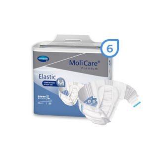 An all-in-one slip style pad for moderate to very severe incontinence, suitable for all body shapes. MoliCare Premium Elastic is self explanatory and quick and easy to apply with only 2 elasticated side panels and 2 re-closable tapes.