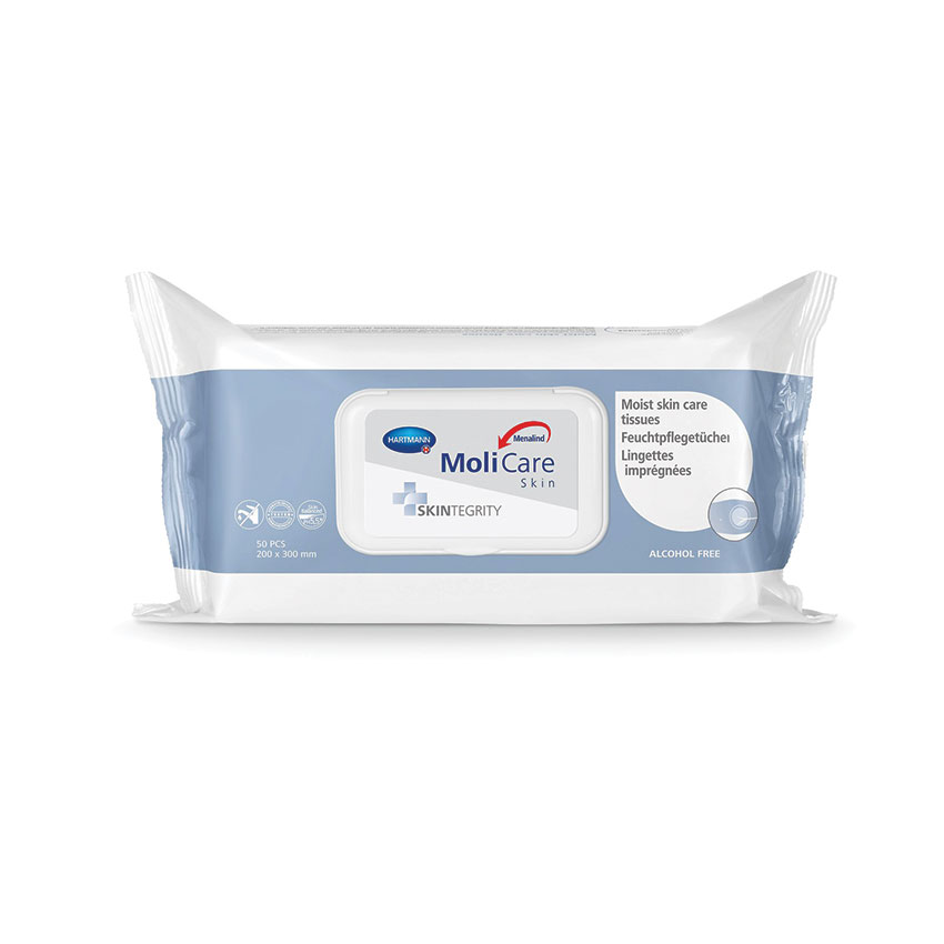 MoliCare® Skin Care Tissues are soft spunlace based wipes moistened with a PEG-free cleansing lotion and are pH 5.5 skin-neutral with water-free application.